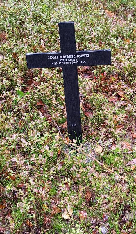 Der Soldat Josef Matauschowitz wurde am 30.10.1920 geboren. Im Zweiten Weltkrieg kämpfte er als Oberjäger in der Wehrmacht. Am 29.12.1945 fiel er während der Kämpfe in den Vogesen nahe der Stadt Münster (französisch: Munster, elsässisch: Menschter) im Alter von 25 Jahren.