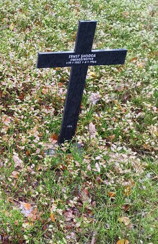 Der Soldat Ernst Skodda wurde am 19.01.1902 geboren. Im Zweiten Weltkrieg kämpfte er als Obergefreiter in der Wehrmacht. Am 06.01.1946 fiel er während der Kämpfe im Elsass in den Vogesen nahe der Stadt Münster (französisch: Munster, elsässisch: Menschter) im Alter von 43 Jahren.