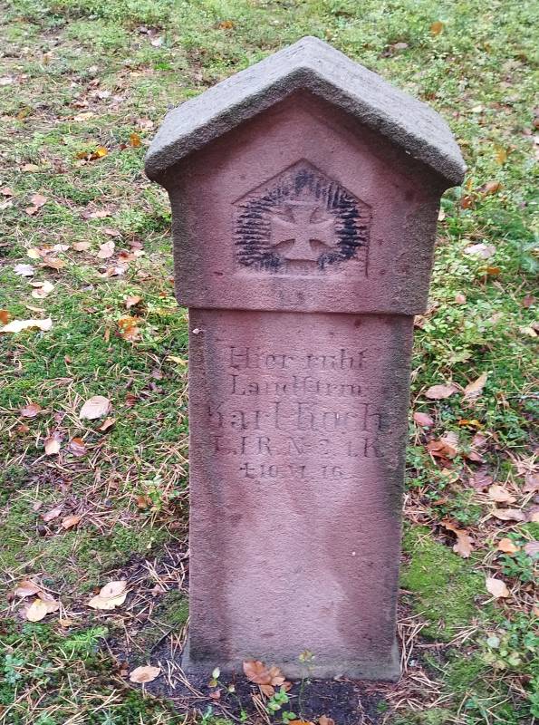 Der Soldat Karl Koch stammte aus der bayerischen Landeshauptstadt München. Im Ersten Weltkrieg kämpfte er als Landsturmmann in der 1. Kompanie des 2. bayerischen Landwehr-Infanterie-Regiments. Am 10.06.1916 starb er schwer verwundet in einem Lazarett in Drei Ähren (französisch: Trois-Épis). Die Verwundung zog er sich bei den Kämpfen in den Vogesen nördlich der Stadt Münster (französisch: Munster, elsässisch: Menschter) nahe Lingekopf, Schratzmännele und Barrenkopf zu.