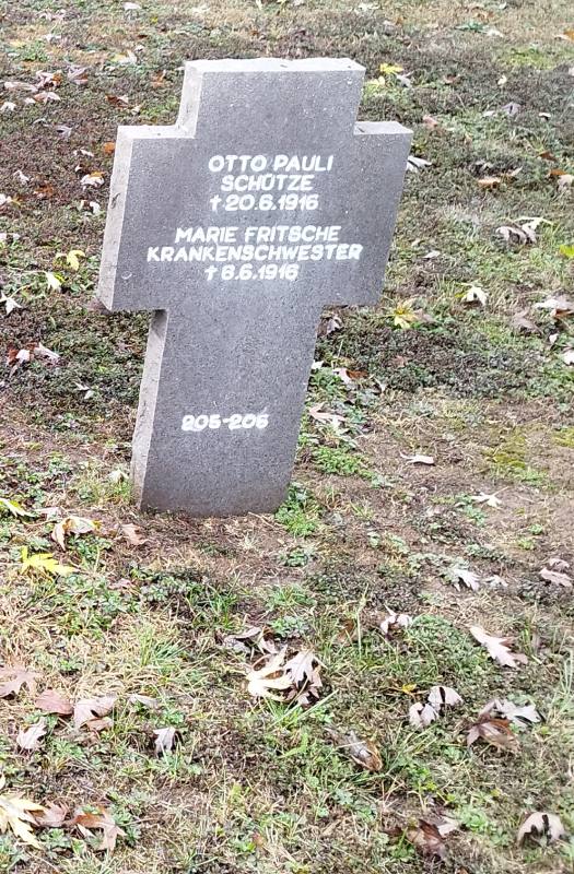 Marie Fritsche starb am 08.06.1916, vermutlich in einem Lazarett in Colmar. Man begrub sie auf dem Soldatenfriedhof Colmar in Grab 206.