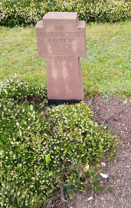 Der Soldat Kastulus Pröbstl stammte aus der bayerischen Stadt Grafing. Im Ersten Weltkrieg diente er als Infanterist in der 6. Kompanie des 18. bayerischen Reserve-Infanterie-Regiments. Am 09.03.1915 starb er während der Kämpfe in der Nähe der Stadt Münster (französisch: Munster, elsässisch: Menschter) in einem Lazarett in Münster.