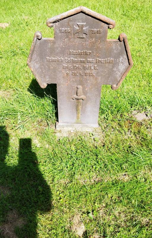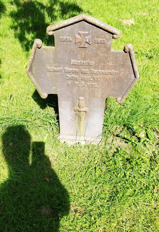 Der Soldat Helmut Karow stammte aus Buchwerder, Czarnikau. Im Ersten Weltkrieg kämpfte er als Musketier in der 2. Kompanie des 47. Infanterie-Regiments. Am 10.05.1915 verstarb er im Reserve-Lazarett 4 in Saarbrücken, nachdem er zuvor im Kampf nahe Verdun bei Les Éparges