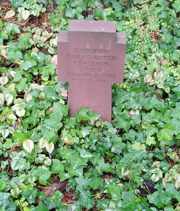 Der Soldat Oskar Vater wurde am 27.02.1894 in der bayerischen Landeshauptstadt München geboren. Im Ersten Weltkrieg kämpfte er als Kriegsfreiwilliger in der 4. Batterie des 8. bayerischen Reserve-Feldartillerie-Regiments. Am 24.02.1915 fiel er während der Kämpfe in den Vogesen am Mönchberg nahe der Stadt Münster (französisch: Munster, elsässisch: Menschter). Ostkar Vater wurde 20 Jahre alt.