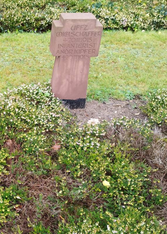 Der Soldat Michael Schäffer wurde am 19.06.1889 in Bubach an der Naab geboren, einem Ortsteil der bayerischen Stadt Schwandorf. Im Ersten Weltkrieg kämpfte er als Unteroffizier in der 3. Kompanie des 18. bayerischen Reserve-Infanterie-Regiments. Am 20.03.1915 fiel er während der Kämpfe in den Vogesen nahe der Stadt Münster (französisch: Munster, elsässisch: Menschter). Michael Schäffer wurde 25 Jahre alt.
